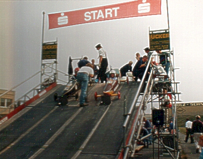 Am 14.04.2002 haben wir das erste Mal nach Jahren der Pause wieder eine Slalomveranstaltung durchgeführt. Es war ein Lauf zum ADAC Youngster-Slalom-Cup, um den wir uns im Herbst 2001 beworben hatten. Es war aber nicht nur ein Lauf zum ADAC Youngster-Slalom-Cup, sondern es war die Auftaktveranstaltung zur Serie 2002. Der Ehrengast unserer Veranstaltung war der amtierende Deutsche Meister (2001) der Formel König powert by Volkswagen.